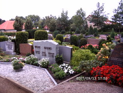 Urnengrabfeld auf dem Friedhof in Abbensen: Im Oktober 2002 wurde auf dem neu erschlossenen Urnengrabfeld die erste Beisetzung vorgenommen. Die Idee war, den Hinterbliebenen eine pflegeleichte Grabpflege zu ermöglichen. Die Grabplatten sind so in das Erdreich eingelassen, dass der Rasen einfach gemäht werden kann. Um dieses zu gewährleisten, kann man bei den Rasengräbern natürlich nur in den Wintermonaten Blumen oder Gebinde hinterlegen. Das Grabfeld wurde von der Gemeinde so positiv aufgenommen, dass für eine weitere Neuerschließung ähnliche Gedanken den Kirchenvorstand bewegen. |