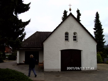 Kapelle auf dem Friedhof an der Mühlenstraße: Durch die große Anzahl von Neubürgern, die durch die Flucht aus ihrer östlichen Heimat 1945 bei uns Aufnahme fanden, waren die Wohngelegenheiten im Dorfe recht beengt und gerade bei Todesfällen zeigten sich dadurch erhebliche Schwierigkeiten. (Anmerkung: früher wurden die Toten noch zu Hause aufgebahrt) Dieses veranlasste die Gemeinde, auf dem Friedhof an der Mühlenstraße eine neue Leichenhalle zu erstellen, der Beschluss dazu wurde am 26. Februar 1946 gefasst. Es stellte sich jedoch bald heraus, dass sich diese Halle bei größeren Begräbnissen als zu klein erwies. Daher wurde 1965/66 ein größerer Umbau getätigt, die Leichenhalle zur Friedhofskapelle erweitert und gleichzeitig ein Elektroanschluss vorgenommen. Am 20 Januar 1966 wurde bereits die erste Bestattung von den neuen Räumen aus durchgeführt. |