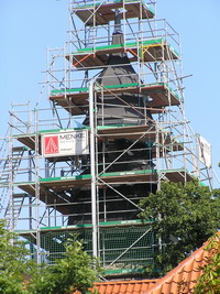 Bei Reparaturarbeiten am Schieferdach des Kirchturmes kam es an den Tag: Die Kirchturmspitze war stark verrostet und drohte herunterzustürzen. Mit einem Autokran wurde die Spitze am 04.Oktober 1984 heruntergehievt. Unter dem Kreuz befindet sich ein Knauf. Barg er ein Geheimnis ? Ältere Leute erzählten, dass dort etwas drin sei, aber was, wusste keiner. So wurde voller Erwartung der Knauf geöffnet, und er enthielt eine stark verwitterte Zeitung, eine versiegelte Streichholzschachtel mit Münzen um 1905 und eine verlötete Kupferschatulle. Was enthielt sie ? Nach vorsichtigem Öffnen kamen zum Vorschein Zeitungen vom Sommer 1905 und ein Bericht des damaligen Pastors, für die Nachwelt dem Knaufe übergeben. Der Inhalt des Berichtes, der in Deutsch - Sütherlin geschrieben wurde kann im Pfarramt oder in o.g. Ortschronik nachgelesen werden (S.384 bis 394). Der Bericht wurde am 03.08 1905 unter Mithilfe des 1 Lehrers Johann Heinrich Niebuhr geschrieben. Verfasst von Heinrich August Adolf, genannt Otto Schrader, zweiter Pastor der ev.-luth. Gemeinde Abbensen.