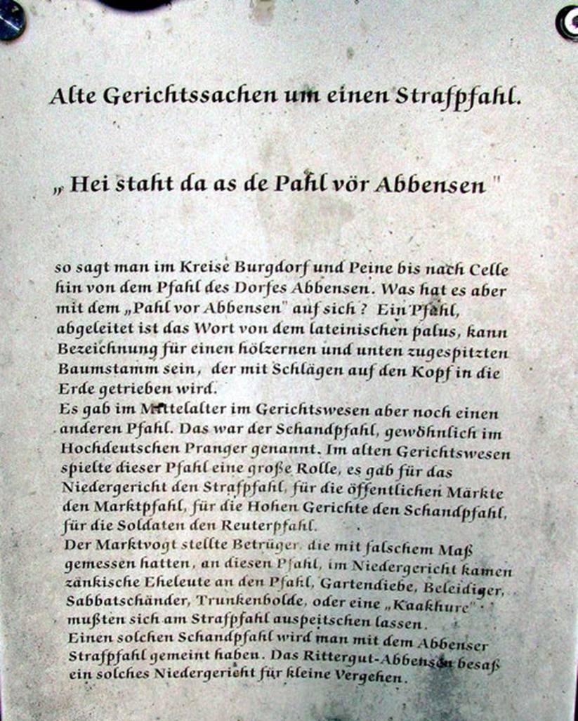 Als Erinnerung an diese Zeit , steht in Abbensen solch ein Pfahl mit