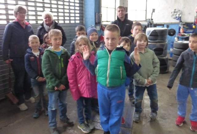 Ausflug mit der Nachmittagsbetreuung der Grundsschule zur Autowerkstatt