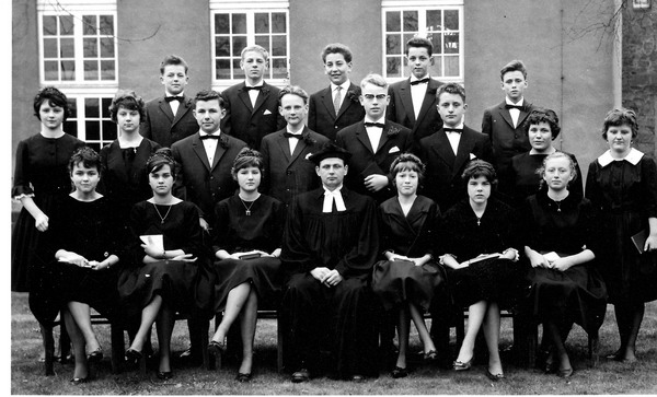 Vordere Reihe: Monika Harms, Traute Koch, Margot Teichert, Pastor Traugott Range, Irina Jakob, Brigitte Horn, Brigitte Hoppe, Marlis Aberle