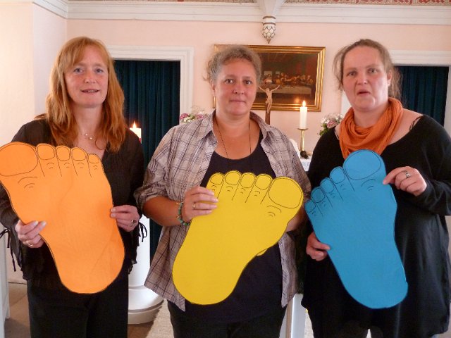 Die Fotos vom Februar 2011 zeigen die Gruppe bei der Erarbeitung der Bibelgeschichte des "barmherzigen Samariters". Ilona und Ruth benutzen hierzu eine Handpuppe und Ruth erklärte anschließend an einem "Erste Hilfe Koffer" wie diese Hilfe heute aussehen würde.