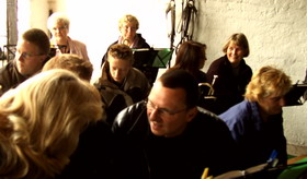 Der Posaunenchor hat sich eingespielt und wartet auf den Beginn des Gottesdienstes