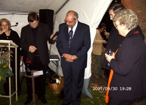 Anschließend überreichten die Pastoren und der Diakon den Eheleuten Münter eine Sonnenuhr, die auch als Vogeltränke genutzt werden kann